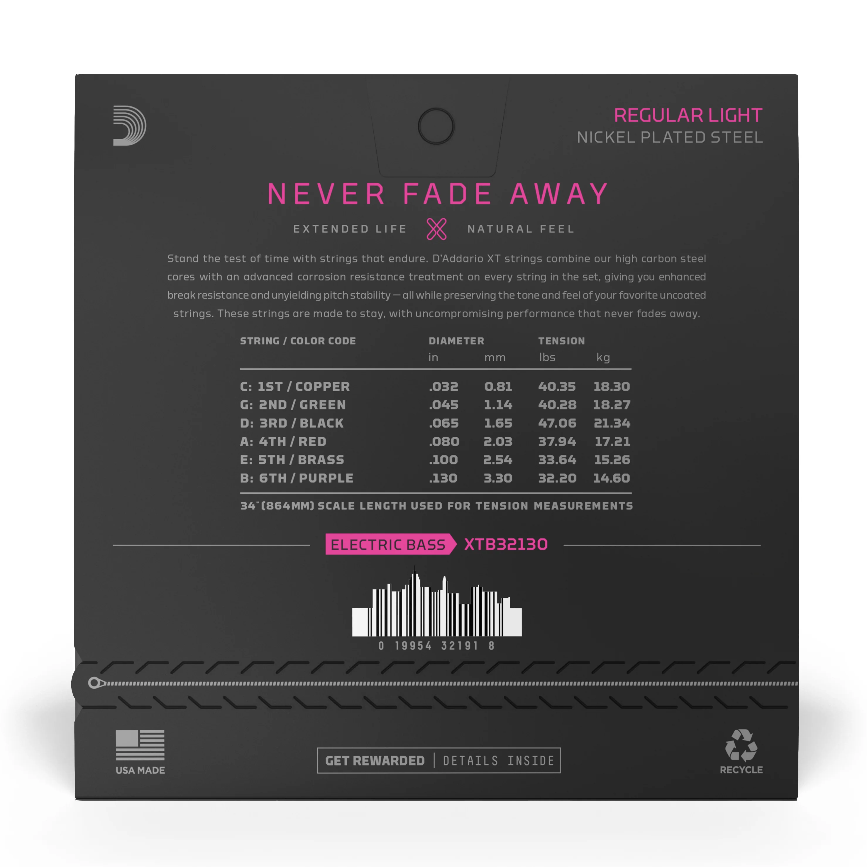 D’Addario XT nickel-plated steel wrap wire is treated before it’s wound onto the core to ensure the tactile feel of - what we regard as - ‘regular’ strings remains. And crucially, the XT treatment produces minimal tonal dampening so you get the bright, powerful sound expected from D’Addario strings.